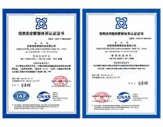 国家高新技术企业、双软认证、两化融合管理体系、ISO质量体系认证,深耕企业互联网服务10年